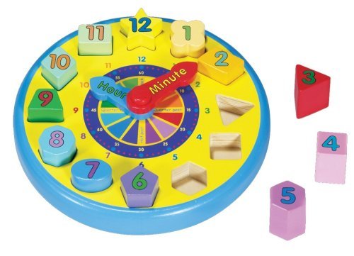 It's time to "block" around the clock! Two toys in one, this colorful clock combines shape sorting and learning to tell time. Place the numbered and shaped pieces in their proper place on the face of the clock, then move the hour and minute hands to make telling time fun! Measures 9" x 5".